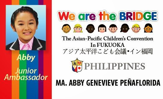 Abby underwent a rigid screening before qualifying as a Philippine Junior Ambassador for Japan Convention where all expenses for the trip, including airfare, food and accommodation are provided by APCC.
