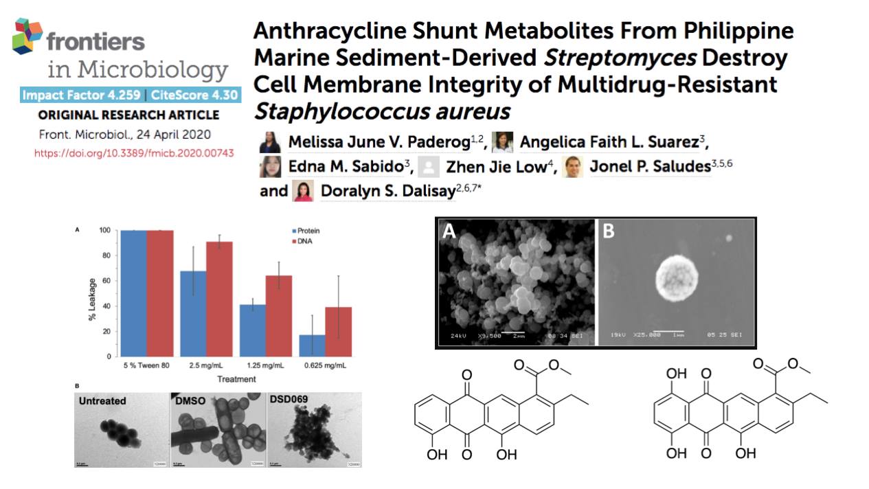 The research team at the Center for Chemical Biology and Biotechnology (C2B2) and Center for Drug Discovery and Development (CND3) led by Dr. Doralyn S. Dalisay and Dr. Jonel P. Saludes has discovered antibiotics from a bacteria thriving in marine sediments of the Philippines.