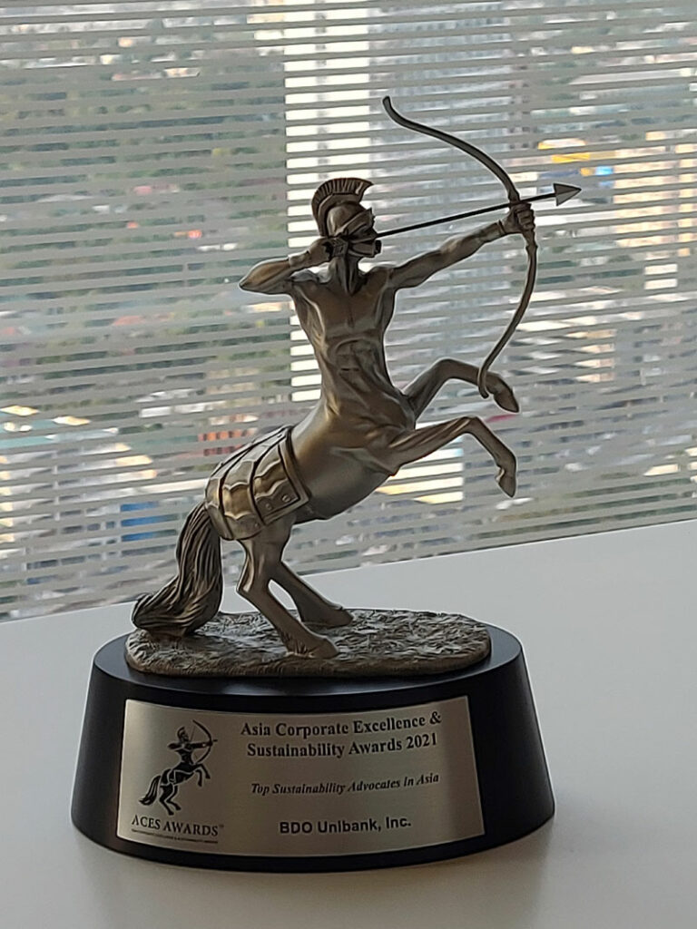 BDO Unibank was recently conferred with prestigious Asia’s Top Sustainability Advocates Award at the 2021 Asia Corporate Excellence & Sustainability (ACES) Awards, an event that features the finest corporate leaders in Asia.