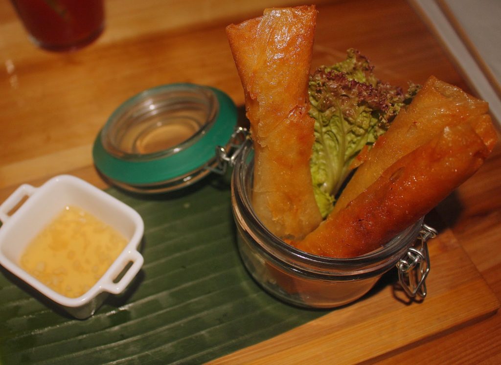 | Tinapa Roll with spicy Suka Tuba dip. |