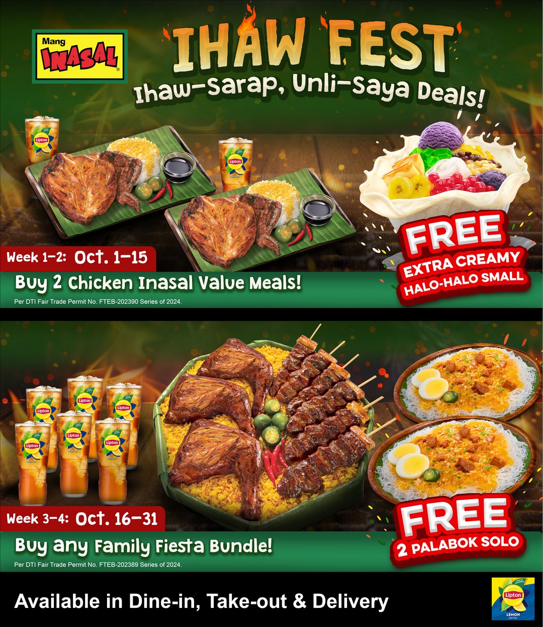 All offers are available for dine-in, takeout, and delivery. Don’t miss out on the fun and flavor at Mang Inasal’s Ihaw Fest this October!