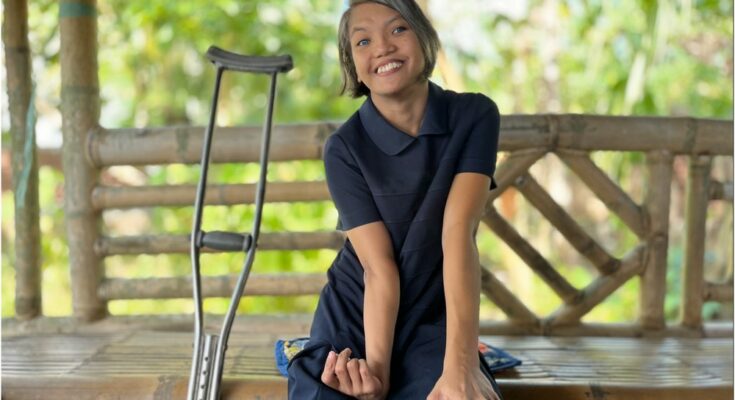 “When Divina was almost three years old, she crossed the street without realizing a slow-moving school van was honking to warn her. Being deaf, she was hit by the van and hospitalized,” said Erlinda Pitalbo, Divina’s mother. “Because of the injuries, a doctor suggested surgery, but it carried a risk of leaving her in a vegetative state. It became harder for her to walk as she grew up. At the age of 13, we decided to use crutches.”