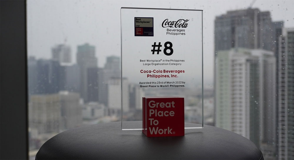 Coca-Cola Beverages Philippines, Inc. (CCBPI)—Coca-Cola’s local bottling arm—is proud to be ranked eighth among the country’s best workplaces, as certified this 2022 by Great Place to Work® (GPTW), a global authority on workplace culture. CCBPI, holding the Top 8 spot, is the only manufacturing and consumer goods company in the Philippines that was included in GPTW’s top 10 list.