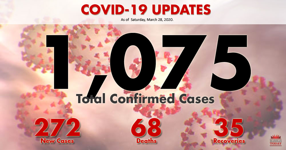 “As of 12nn today, the Department of Health reports 272 new cases (PH804-1,075) of Covid-19. The total number of cases in the country is now at 1,075,” the agency said in its latest bulletin released at 4 p.m.