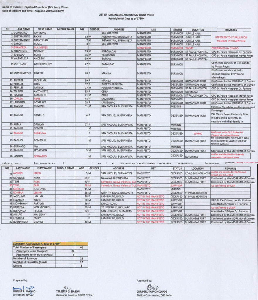 Also, Jeck Conlu, chief of the Public Safety and Transportation Management Office (PSTMO) of the city government is facilitating the proper coordination for cadavers that were retrieved in Dumangas, Iloilo. Most of the bodies, however, were already claimed by their families.