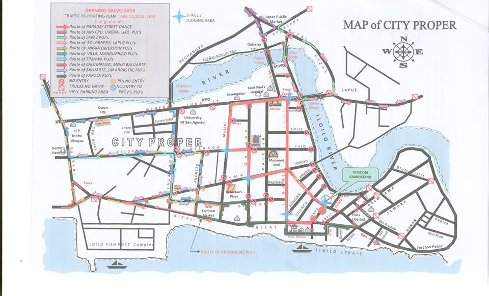 Public Utility Jeepneys (PUJs) are not allowed to enter at Ledesma Street from corner Jalandoni St. to corner Mabini St.; Luna Street from corner Huervana to Forbes Bridge; and Muelle Loney St. from corner Quirino Brdige towards Peralta St.