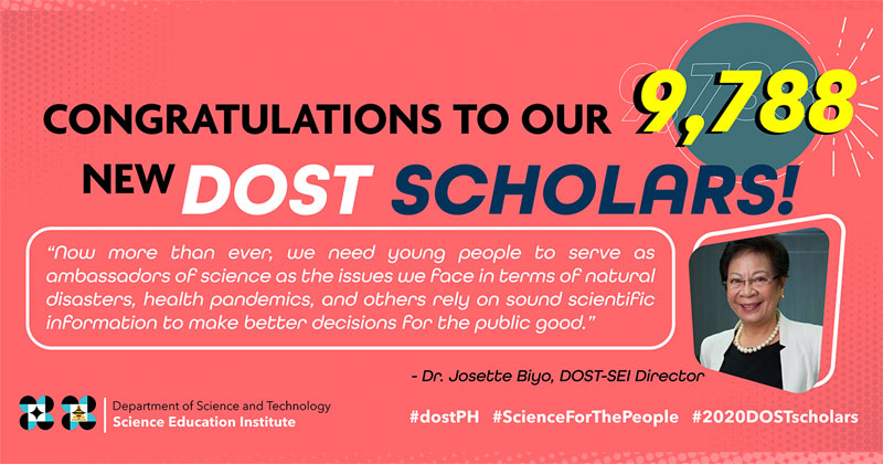 A total of 9,788 graduating senior high school students will have a reason to celebrate as they clinch a slot in the country’s premier science scholarship programs – the Department of Science and Technology – Science Education Institute (DOST-SEI) Scholarship Programs.