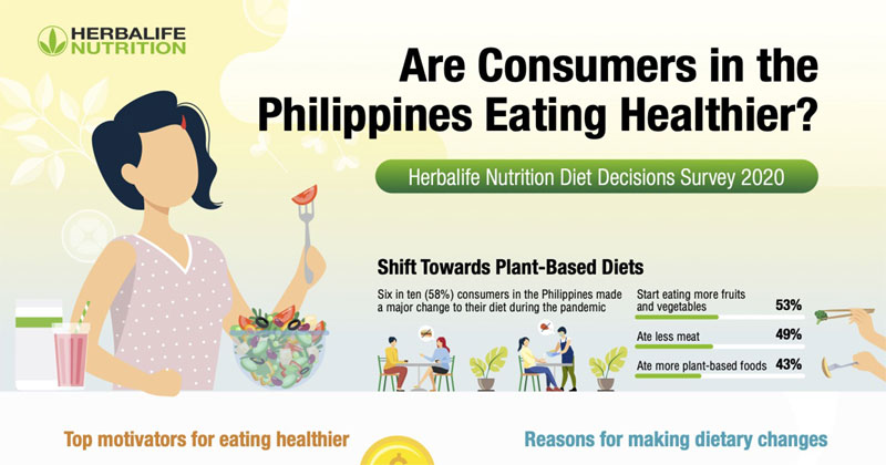 Premier global nutrition company, Herbalife Nutrition, recently released findings from the 2020 Diet Decisions Survey, which revealed that Filipino consumers are eating better. Among those polled, 53% said they have started eating more fruits and vegetables and 43% ate more plant-based food. Among the 11 Asia Pacific markets surveyed, the Philippines also ranked highest (62%) in their openness to plant-based foods/meatless options.