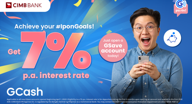 To help Filipinos grow their finances and achieve their #IponGoals, GCash, the leading mobile wallet in the country, and CIMB Bank, the country’s leading digital banking services provider, are offering as much as 7% per annum on GSave. Currently the highest interest rate available in the market, the offer is available to GCash users who will sign up for their first GSave account from April 1, 2022 to June 30, 2022.
