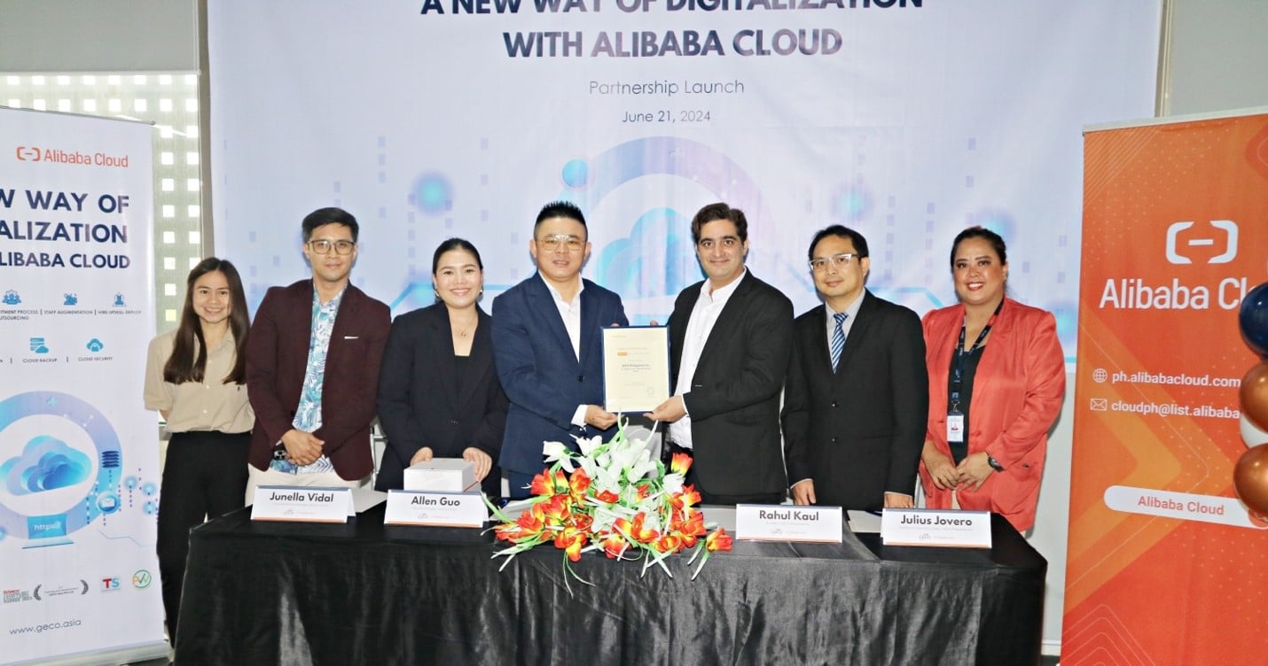 The partnership was formally announced at a launch event attended by key figures from both organizations, including Rahul Kaul, CEO and Managing Director of GECO Asia Pte Ltd, and Allen Guo, General Manager for the Philippines, Alibaba Cloud Intelligence, alongside Francis Arjonillo, Solutions Architect, Francine Geli, Marketing Manager, and Junella Vidal, Channel Partner Manager from Alibaba Cloud Intelligence