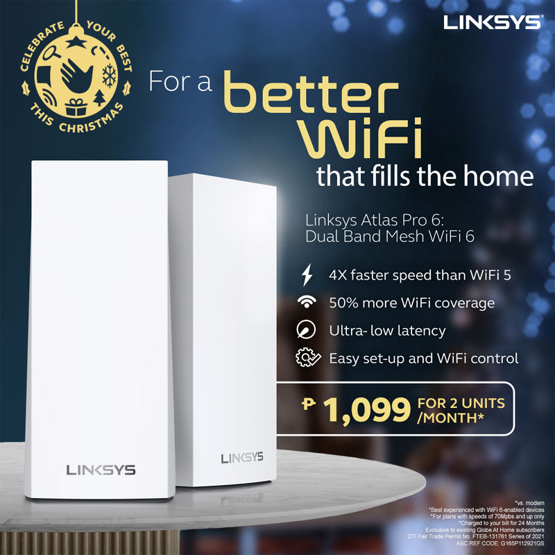 Globe At Home has announced that it has partnered with Linksys, a global leader in home and business WiFi solutions, to give Filipinos the chance to be one of the first in Asia to enjoy the benefits of owning Atlas Pro 6 Dual-Band Mesh Wifi 6 —Linksys’ newest addition to its roster of all-encompassing WiFi 6 portfolio.