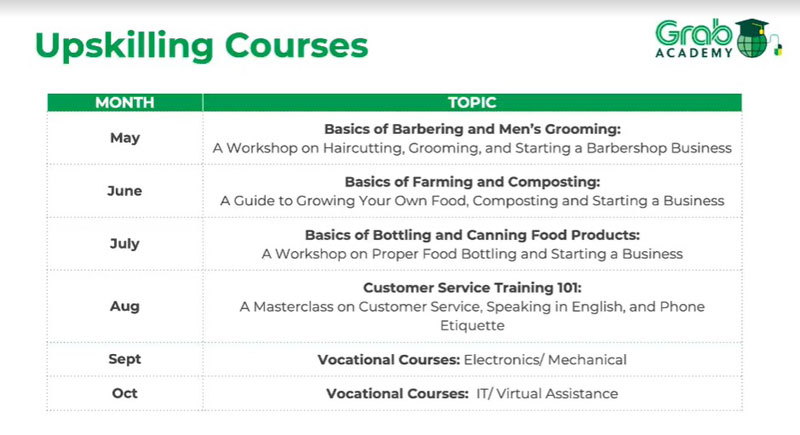 Under this pillar, Grab Philippines is also working with local government units and agencies to further expand GrabAcademy and offer a range of vocational courses on the platform.