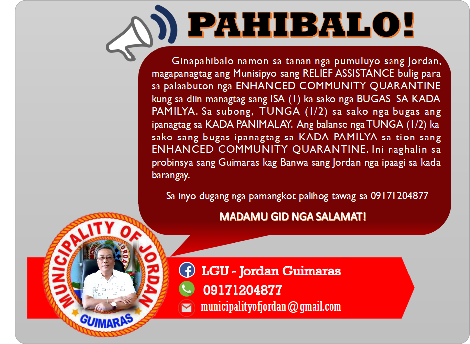 UPDATE: The local government unit of Jordan confirmed that sack will be given to each family in the municipality. Those who have received half-sack of rice before the ECQ, will receive the remaining half during the ECQ.