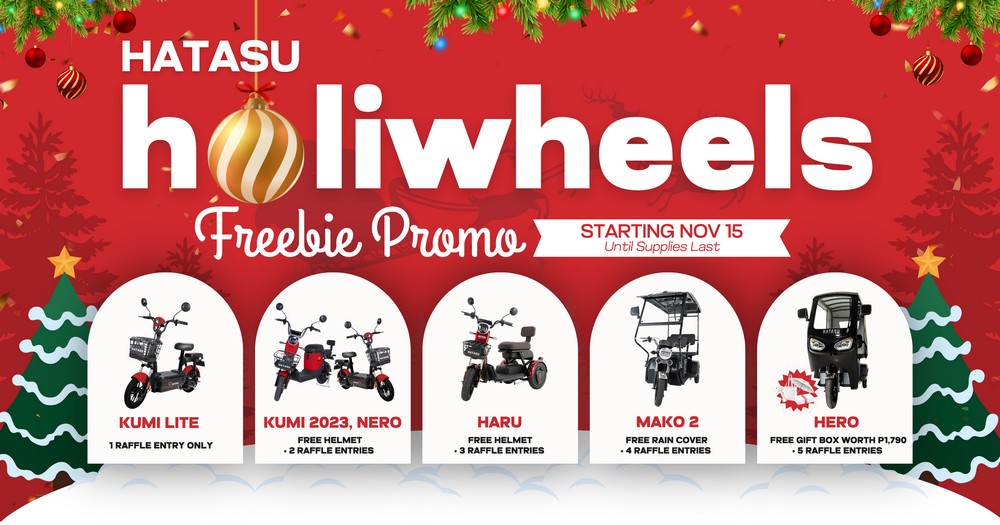 On top of its raffle promo, HATASU ebike is also going to have a Christmas Freebie Promo where there will be added freebies received from every unit purchased. The promo will run from November 15 until supplies last.