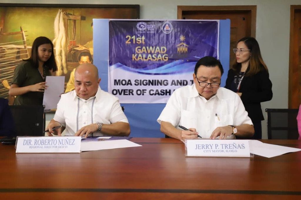 Mayor Jerry P. Treñas received the P200,000 check from the Office of Civil Defense (OCD) Regional Director Jose Roberto R. Nuñez during the signing of Memorandum of Agreement and turnover of cash incentive at City Hall on February 19, 2020.