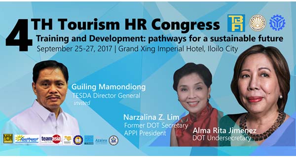 Among the experts who will present issues and solutions are: Tourism Undersecretary Alma Rodriguez on “The National Tourism Development Plan 2017-2022 and the Role of HR;” Ed Vitug, general manager of The Bayleaf Hotel, on “On-the-job training and immersion program: Lessons Learned;” Ma. Susan P. Dela Rama, executive officer of the TESDA certification office, on “Updates on the ASEAN MRA for Tourism Professionals: Assessment and Certification”; Narzalina Lim, former Tourism Secretary and president of Asia Pacific Projects Inc. on “Upgrading Skills of Teachers and Trainers Across all Levels”; and Velma Jane Lao, local economic and investment promotions officer of the Iloilo provincial government, on “Promoting Inclusivity in HRD.”