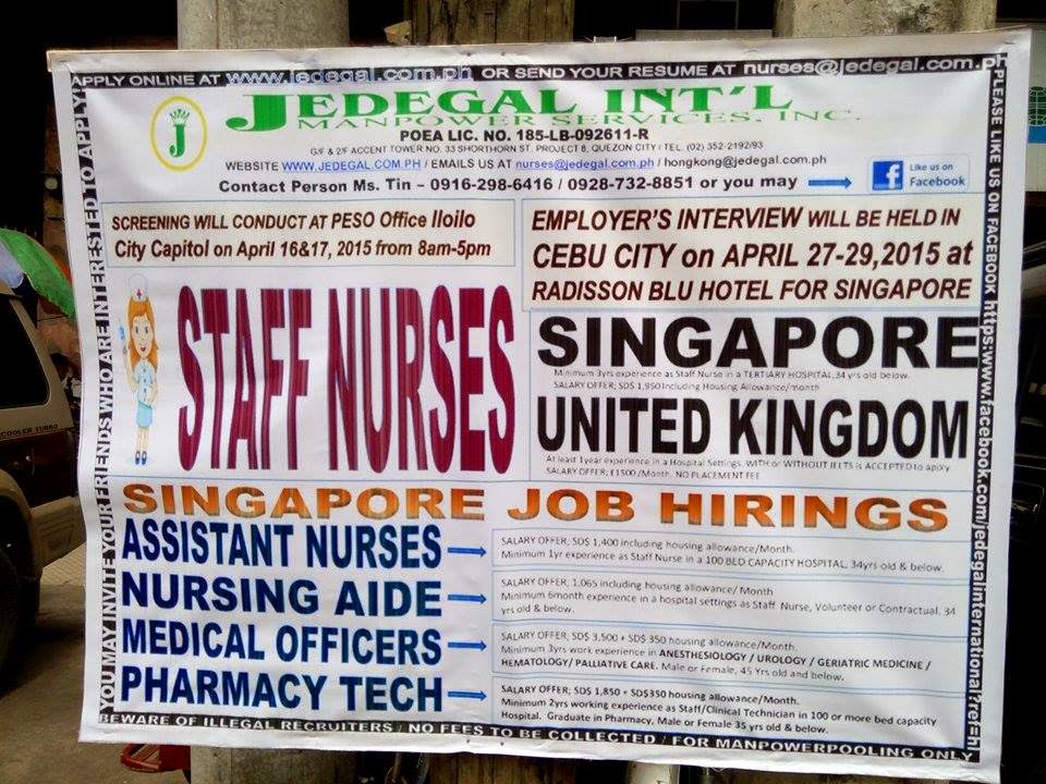 Jedegal International Manpower Services, Inc goes to Iloilo City to hire nurses for Singapore and United Kingdom.