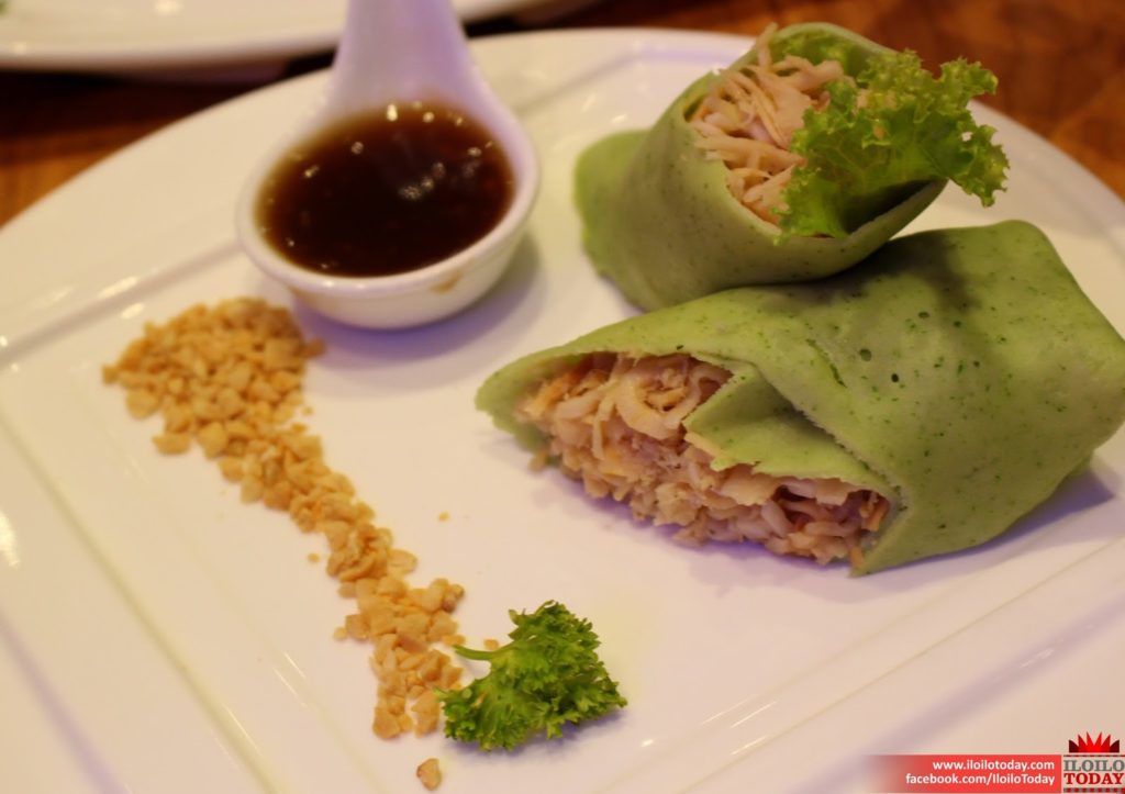 Lumpia Presko, a sautéed crabmeat and bamboo shoots filling rolled in malunggay-infused wrapper with sweet garlic sauce.