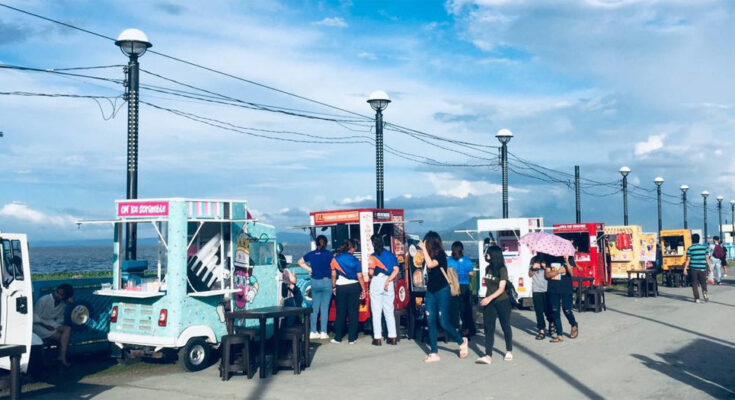 Lined-up along the bridge-like walkway of Baywalk, Aplaya are seven (7) Bajaj Food Cart concepts with varying famous Pinoy favorite snacks from burgers, hotdog sandwiches, takoyaki, ice scramble, fruit refreshments and coffee latte.
