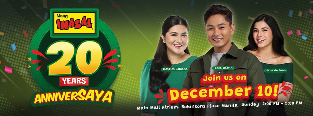 The AnniverSAYA Blowout comes two days after #MangInasalAt20 AnniverSAYA celebration at the Main Mall Atrium of Robinsons Place Manila. Mang Inasal endorsers, Coco Martin, Dimples Romana, and Jane De Leon will topbill the Dec. 10 event. There will be free Extra Creamy Halo-Halo and Mang Inasal Palabok, Game Booths, and Photobooth from 2PM to 4PM. During the main event at 4PM, an AnniverSAYA raffle is in store for attendees with grand prizes like iPhone 14, Samsung 50” Smart TV, iPad 10th Gen and ₱5,000-worth of Mang Inasal Gift Certificates.