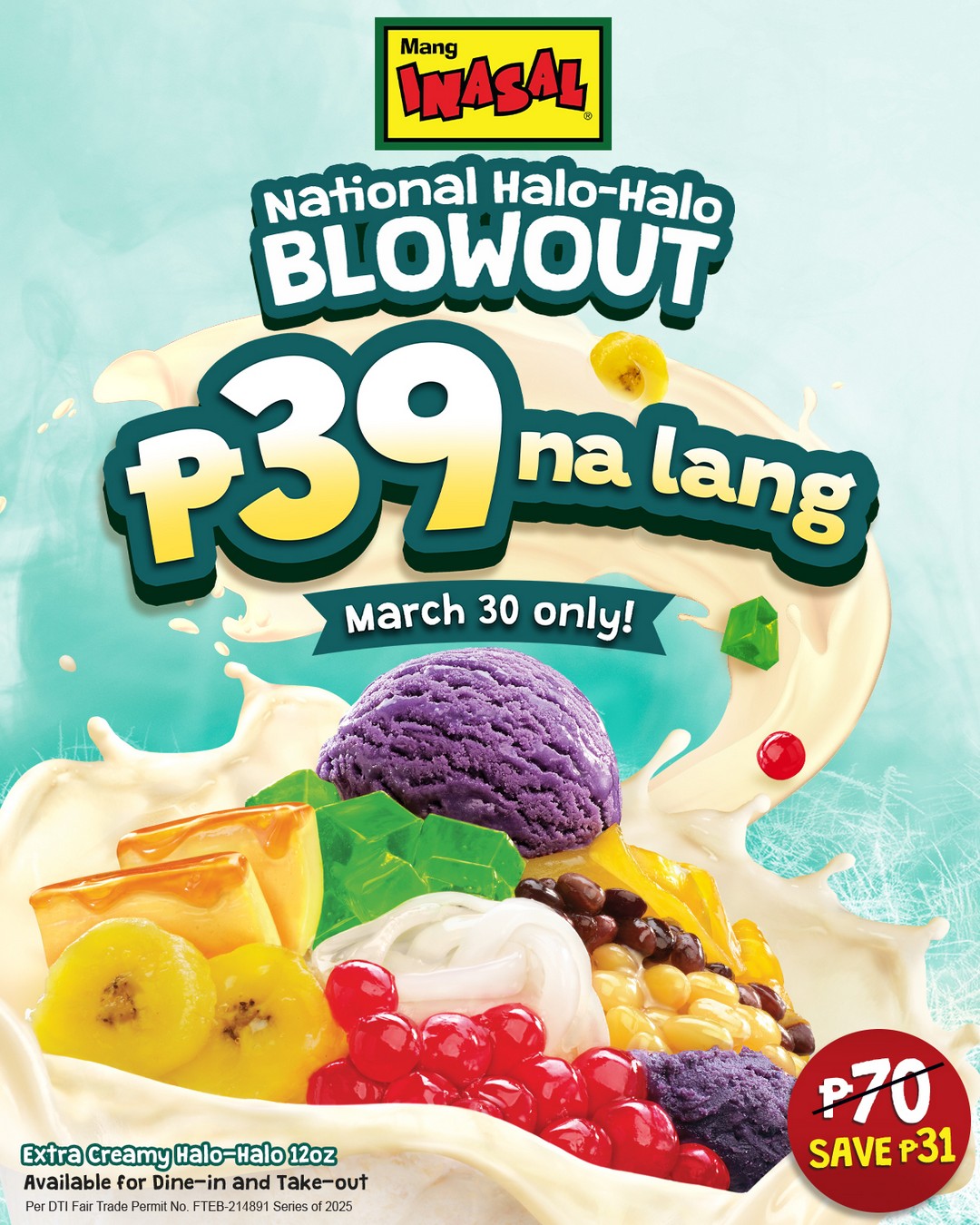 This Sunday, customers can enjoy the Extra Creamy Halo-Halo Small Size for only ₱39, saving ₱31 when ordering for dine-in or takeout at any Mang Inasal branch nationwide