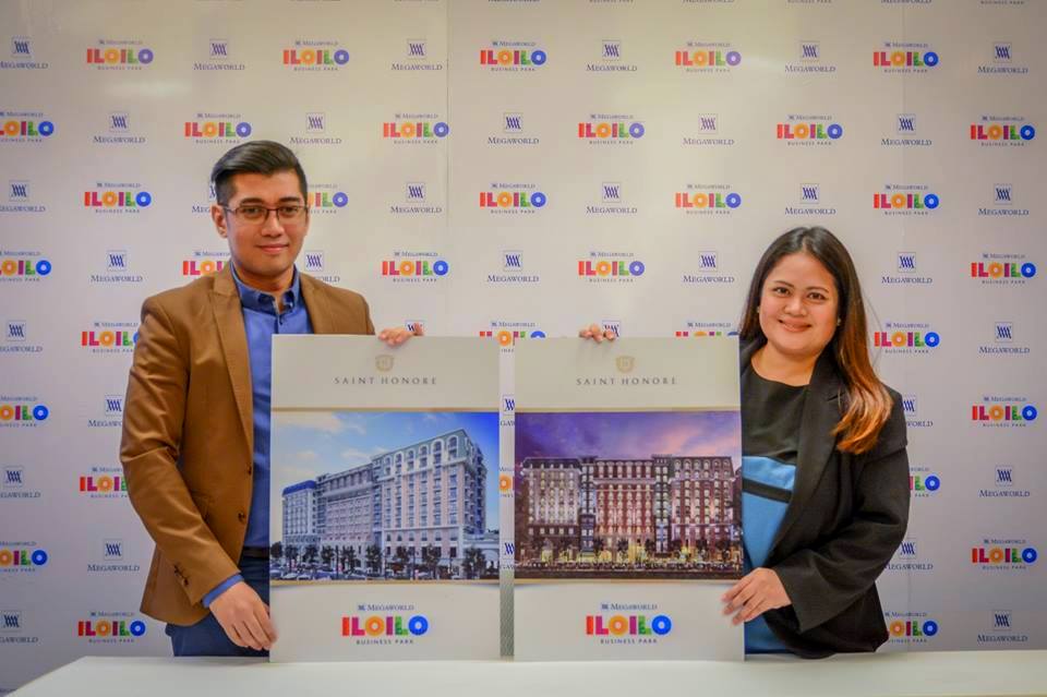 | Megaworld Head of PR and Communications Harold Geronimo and Iloilo Business Park Vice President for Sales and Marketing Jennifer Ann Palmares-Fong present the Saint Honore condo to local media. |