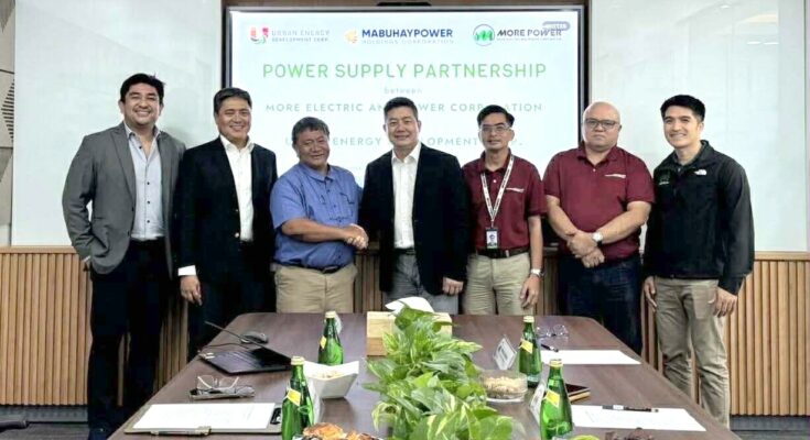 The agreement was signed between MORE Power President and CEO Roel Z. Castro and Alfonso Javier D. Reyes, President of Urban Energy Development Corporation (UEDC), a MabuhayPower Holdings Corp subsidiary.