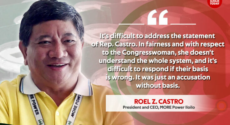 MORE Power President and CEO Roel Castro said that it’s difficult to respond to Rep. Castro’s accusations, especially when these lack basis.