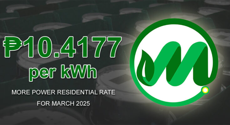 MORE Power announced that the average residential electricity rate this March has dropped to ₱10.4177 per kilowatt-hour (kWh), a significant reduction of ₱0.7836 per kWh compared to February 2025.