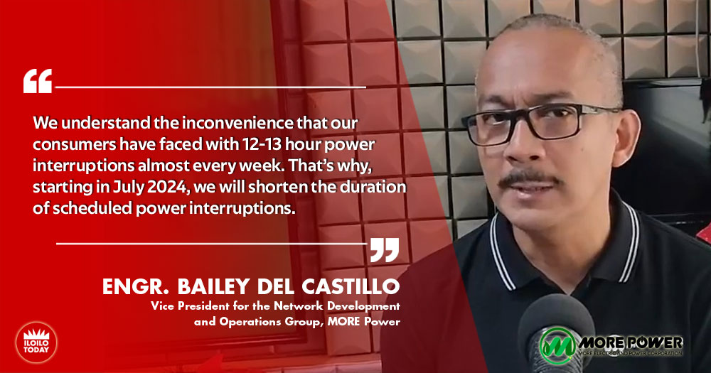 MORE Power announced that the duration of scheduled power interruptions on weekends will be reduced from 12-13 hours to 8 hours starting this July 2024.