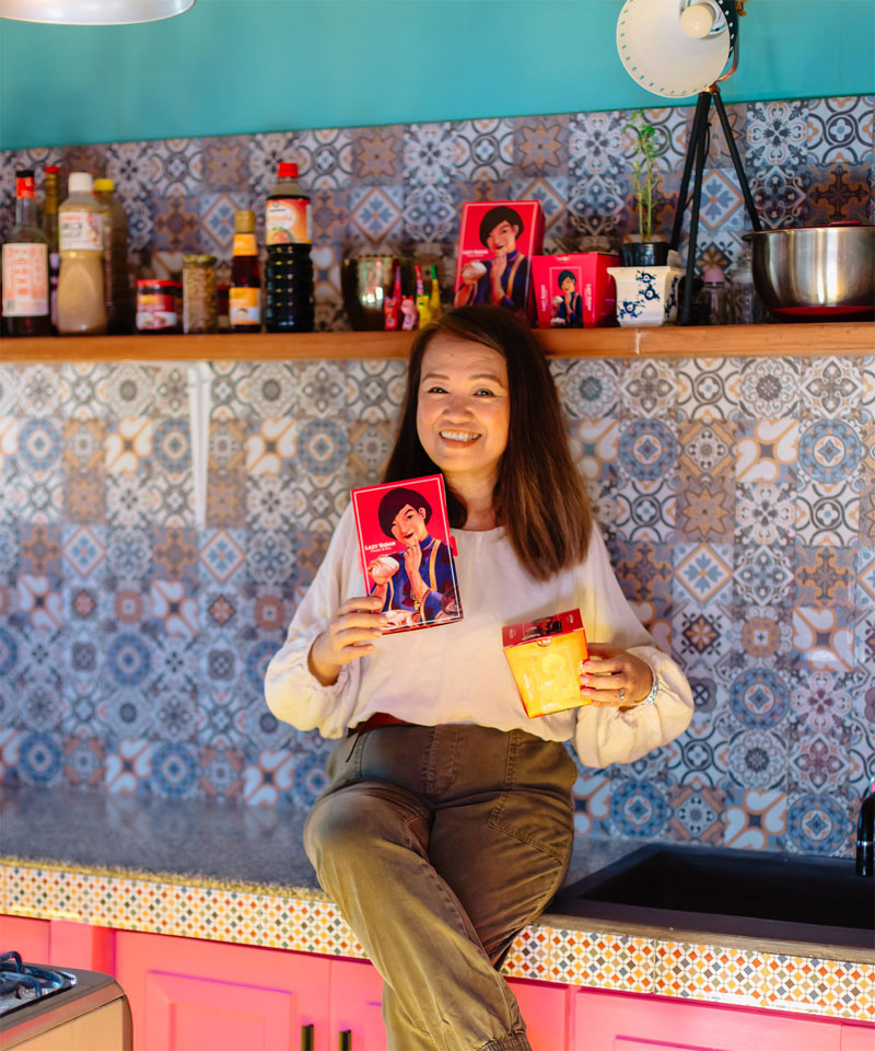 Lazy Susan’s kitchen has a homey vibe replete with pink, blue, and earth tones. “We’d like our brand to speak of excitement and flavors, thus the pop of colors,” Wharton shared.