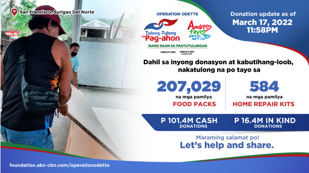 This campaign is under ABS-CBN Foundation DSWD Authority/Solicitation Permit, DSWD-SB-SP-00026-21, valid nationwide until May 28, 2022.