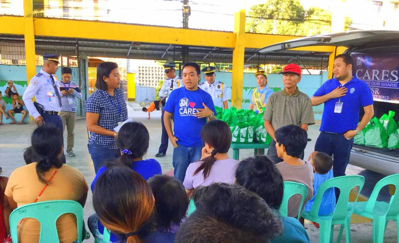 The beneficiaries were given Kalinga packs of SM Markets courtesy of SM Foundation Inc.(SMFI). The packs, composed of food items, are immediate relief assistance for the victims who are temporarily housed in the elementary school of the barangay.