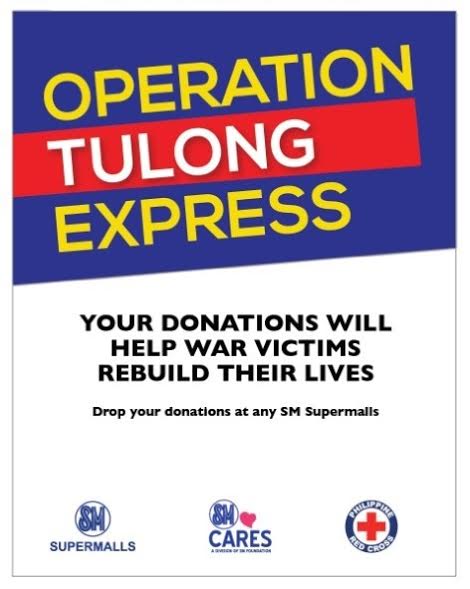 The SM Group’s disaster relief facility, Operation Tulong Express, has been activated at all SM Supermalls nationwide to help the victims of the Marawi crisis.