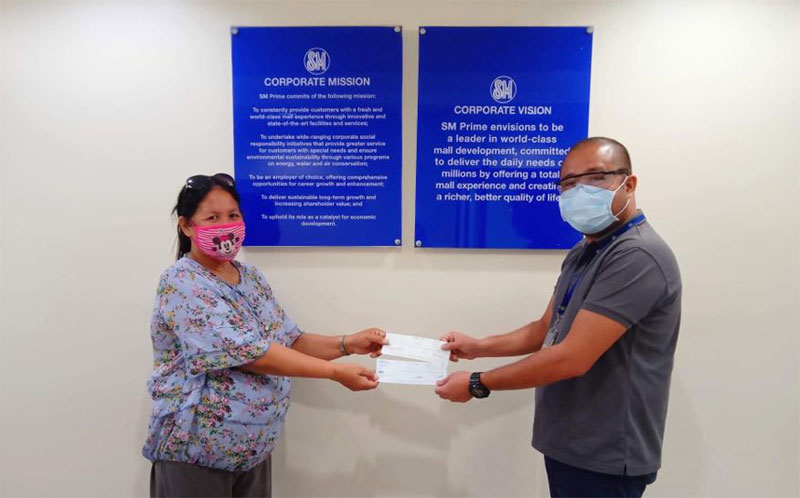 Last May 20, 2020, SM City Iloilo through Assistant Mall Manager Darrel John Defensor, turns over the checks totaling to Php334, 357.68 to Ronita Apurillo, treasurer of Cag-an Upland and Lowland Development Association (CULDA), as part of the continuing assistance to the said people’s organization based in Anilao town in Iloilo province.
