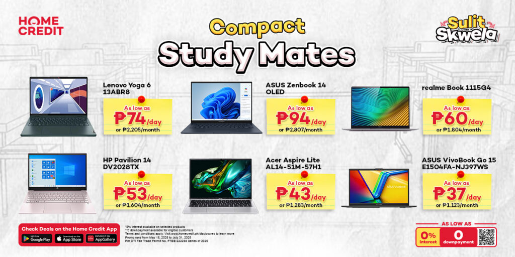 Ginabalik sang Home Credit ang ila Sulit-Skwela 2025 deals para mas hapos kag masarangan ang pagbakal sang gadgets para sa balik-eskwela. Halin sa laptops, tablets kag mobile phones, pwede gid makuha sang mga estudyante kag ginikanan sa manubo nga presyo nga as ₱684 kada bulan ukon ₱23 lang kada adlaw. Sa ila flexible installment plans nga asta sa 24 ka bulan, upod ang 0% interest kag zero downpayment, makatigayon gid sang de-kalidad nga gadgets ang pamilya nga igo gid sa ila budget. Ini nga promo asta lang sa Hulyo 31, insakto gid sa tion nga nagapanghanda para sa pagbukas sang eskwela.