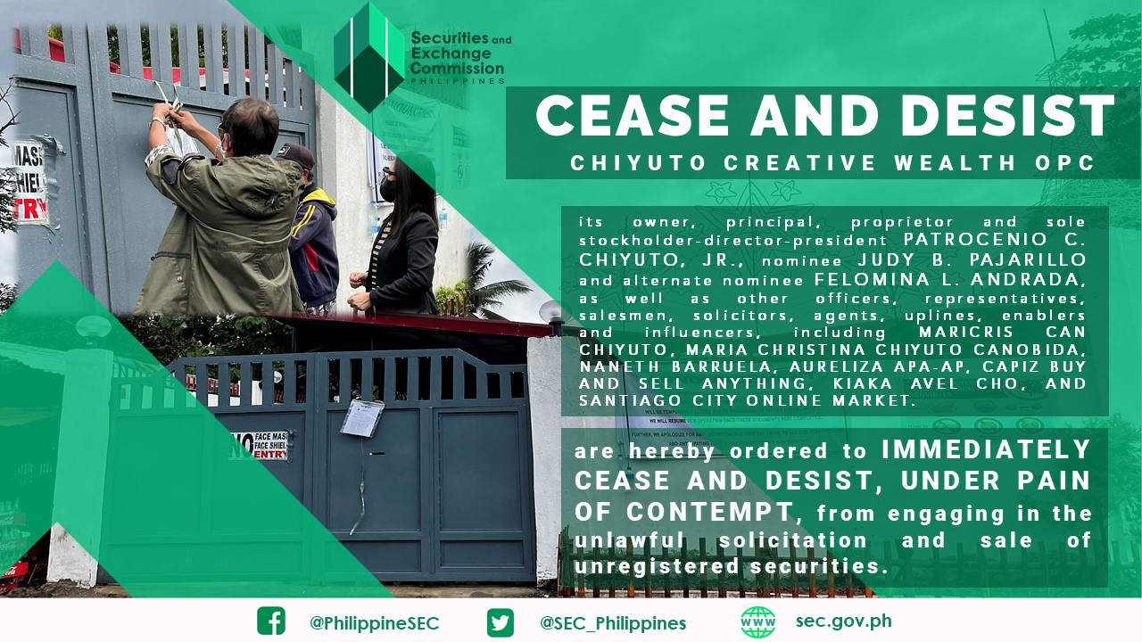 The Securities and Exchange Commission (SEC) has barred Chiyuto Creative Wealth Documentation Facilitation Services from soliciting investments from the public through a double-your-money roulette game. In an order issued on …