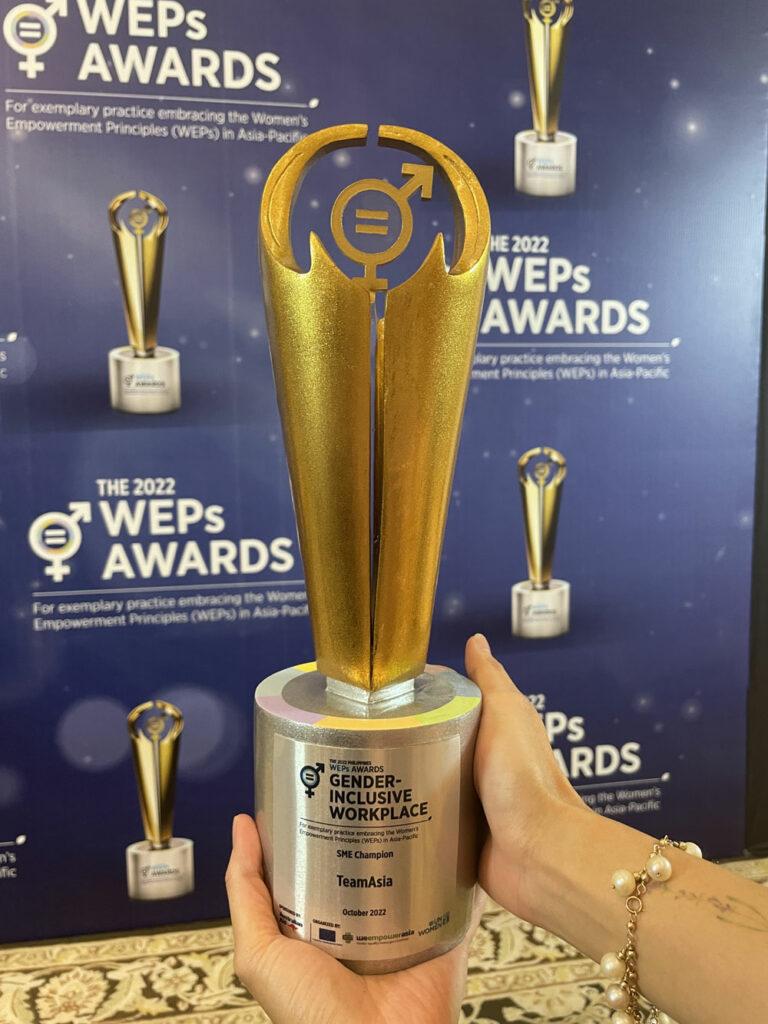 “It is such a great honor to be recognized by the UN Women as a gender inclusive workplace in the SME sector. This award is a testament to our commitment to promoting gender equality and empowering every member of our organization with equal opportunities to grow and flourish in their careers,” said Bea Lim, Managing Director of TeamAsia.