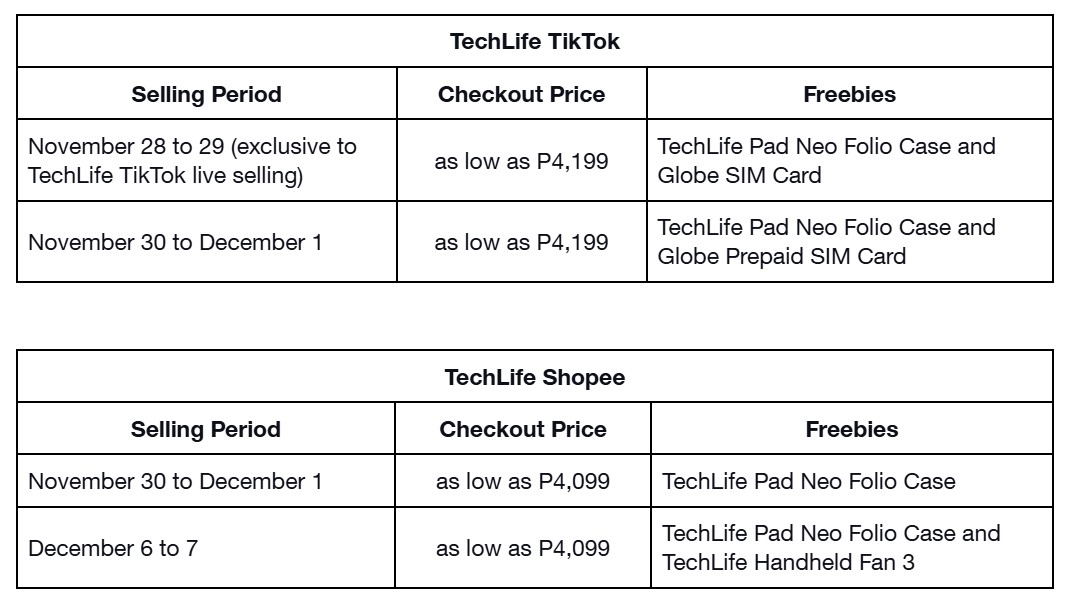 To celebrate the launch of the TechLife Pad Neo, exciting exclusive freebies and discounts will be up for grabs. At the same time, every purchase of the TechLife Pad Neo, whether online or offline, is equivalent to one entry into TechLife’s Grand Raffle Promo, where the TechLife Fam can win a brand new Mitsubishi Mirage G4 or an unforgettable trip for two to Boracay. Simply register the entry via the Grand Raffle Draw Form. Act fast because this promo only runs until January 12, 2024.