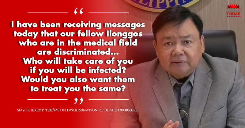 Mayor Jerry P. Treñas urged Ilonggos to stop discriminating against health workers as they are frontliners in the fight against Coronavirus Disease 2019 (COVID-19).