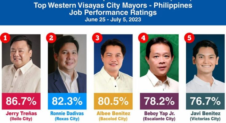 Treñas achieved an 86.7% rating, higher than his previous 82.9% score, in a survey of Top Western Visayas City Mayors.