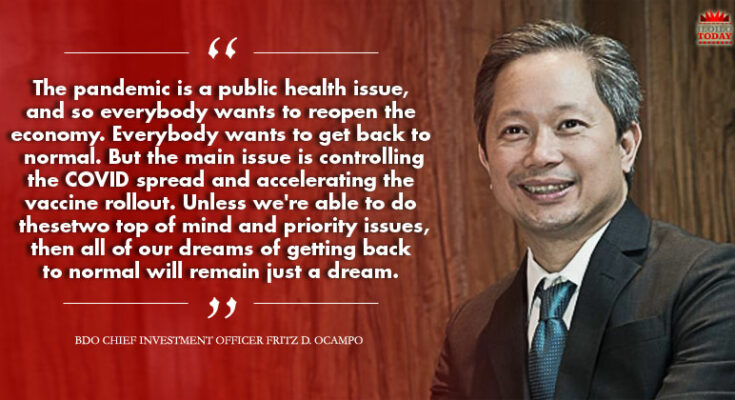 In an interview with CNN Philippines, BDO Unibank chief investment officer Frederico Rafael “Fritz” D. Ocampo said that it is imperative that these two things be implemented for things to get back to normal.