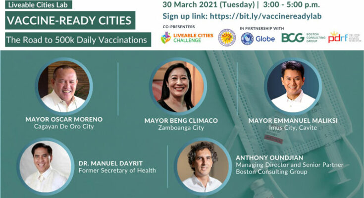 As the government begins to roll out its vaccination program against Covid-19, the Liveable Cities Philippines, the League of Cities of the Philippines, together with partners Boston Consulting Group, Philippine Disaster Resilience Foundation, and Globe Telecom will hold the webinar “Vaccine-Ready Cities: The Road to 500K Daily Vaccinations”.