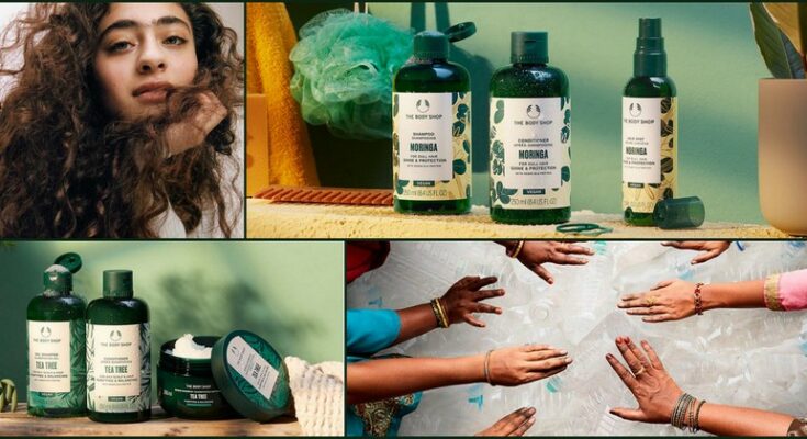 The Body Shop’s new haircare bottles and tubs are made from 100% recycled plastic, including Community Fair Trade recycled plastic collected off the streets of Bengaluru, India.