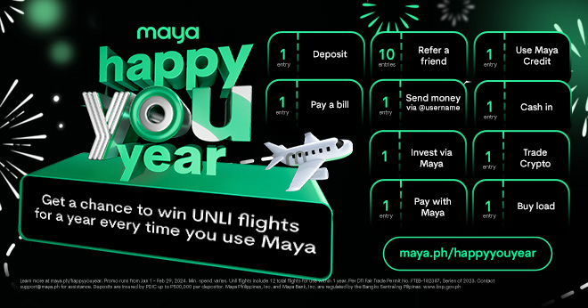 Promo Details: Open to all upgraded Maya users, the UNLI flights promo for the entire 2024 runs from January 1 to February 29, 2024. For more information, visit Maya’s Happy You Year Promo. Stay updated by visiting maya.ph and mayabank.ph and following @mayaiseverything on Facebook, Instagram, YouTube, and TikTok.